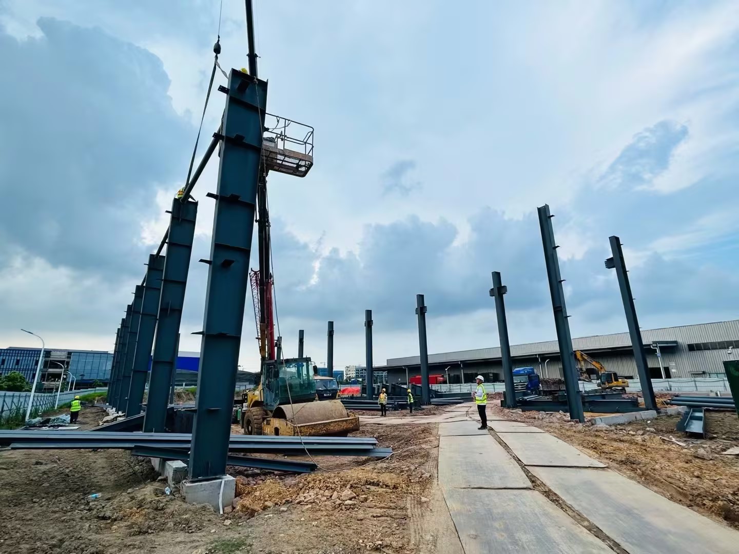 5、用途广泛:钢结构建筑可适用于工厂、仓库、办公楼、体育馆、飞机库等等。既适合单层大跨度建筑,也可用于建造多层钢结构建筑或高层钢结构建筑。